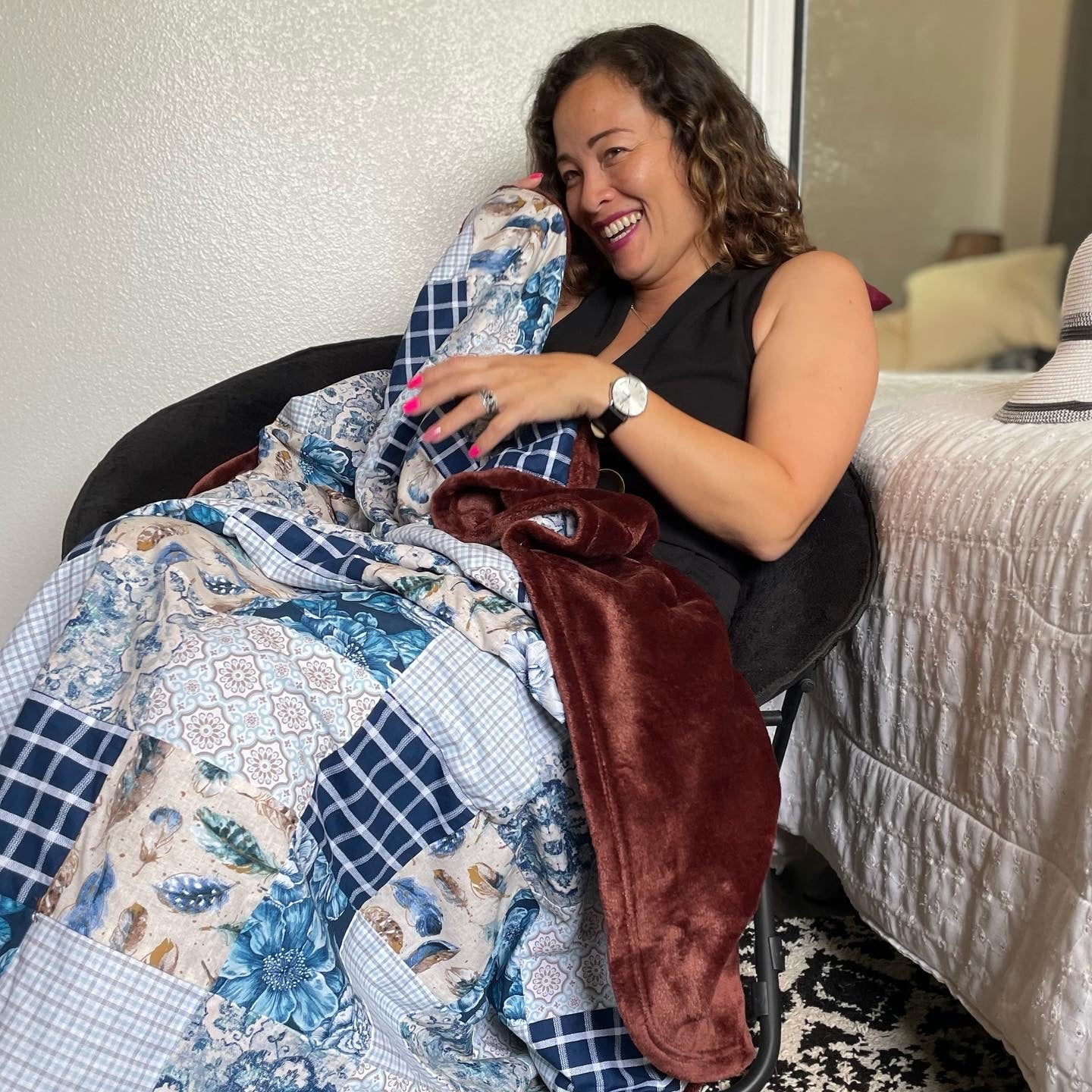 50"x70" Comfy throw, handcrafted with cotton and plush polyester.