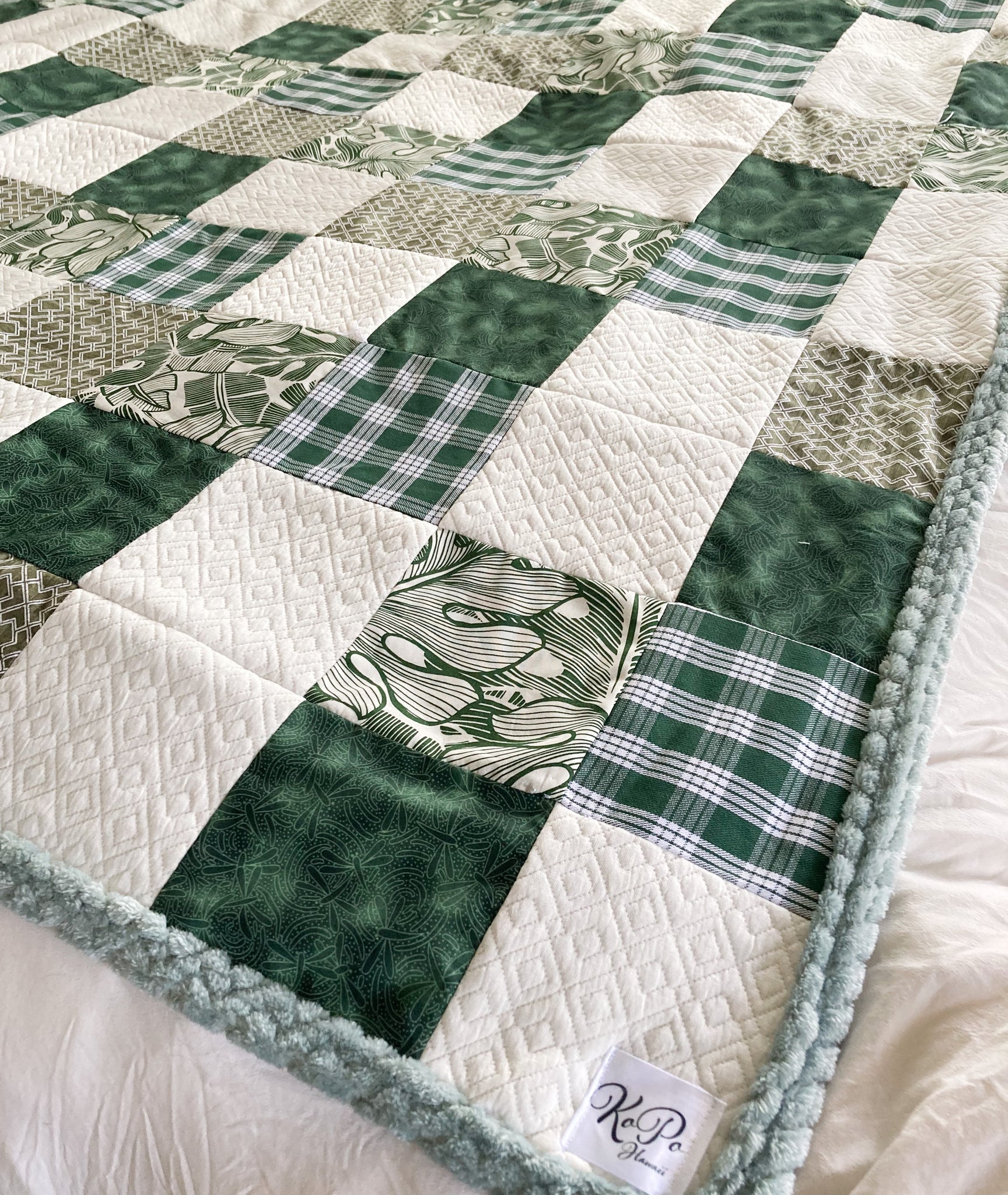 50"x70" Comfy throw, handcrafted with cotton and plush polyester.