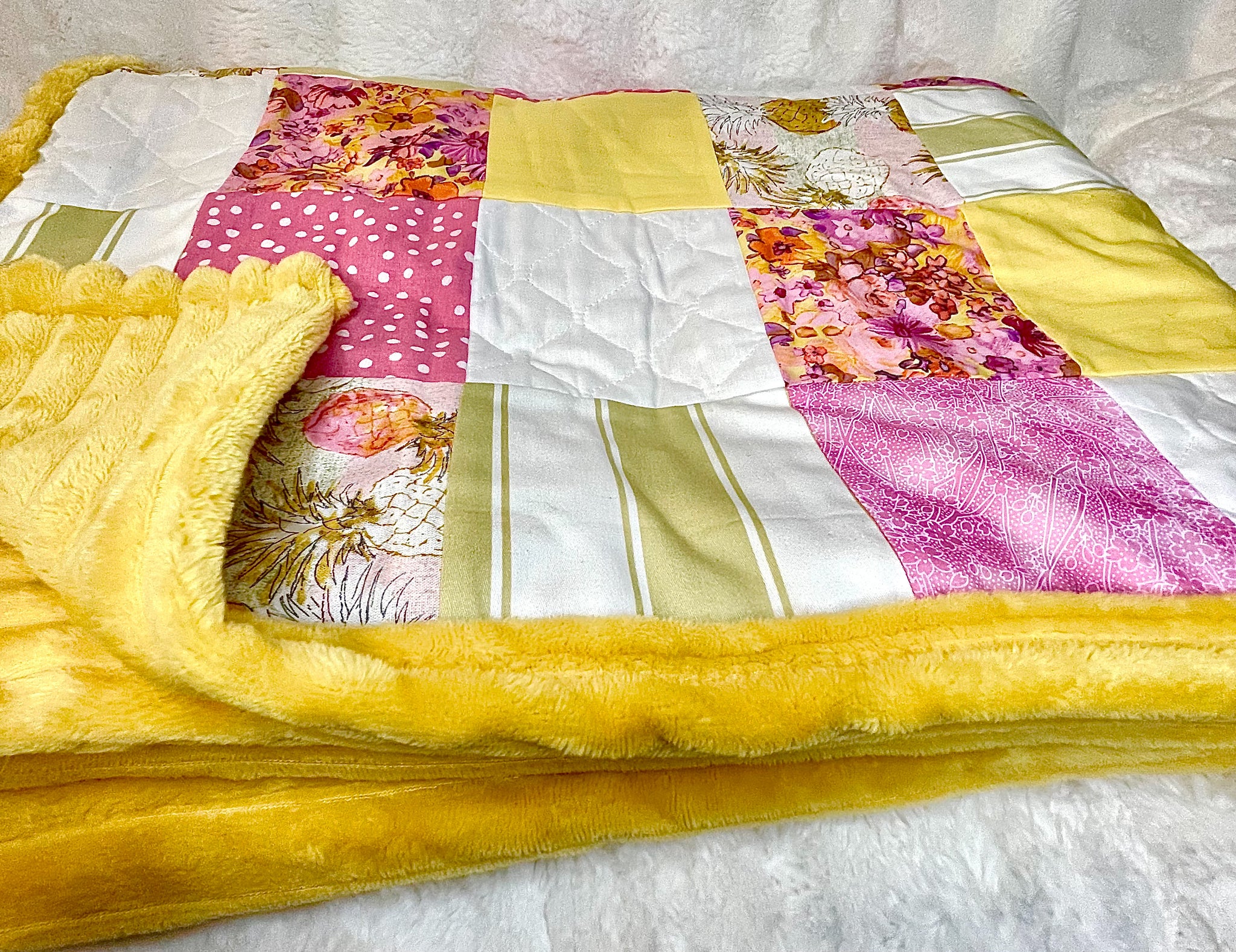 50"x70" Comfy throw, handcrafted with cotton and plush polyester.