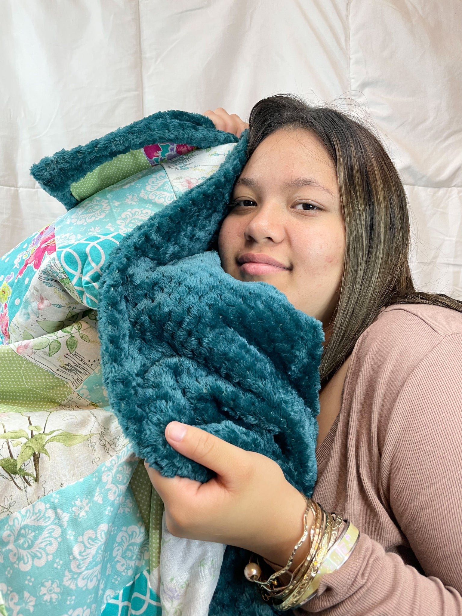 50"x70" Comfy throw, handcrafted with cotton and plush polyester.