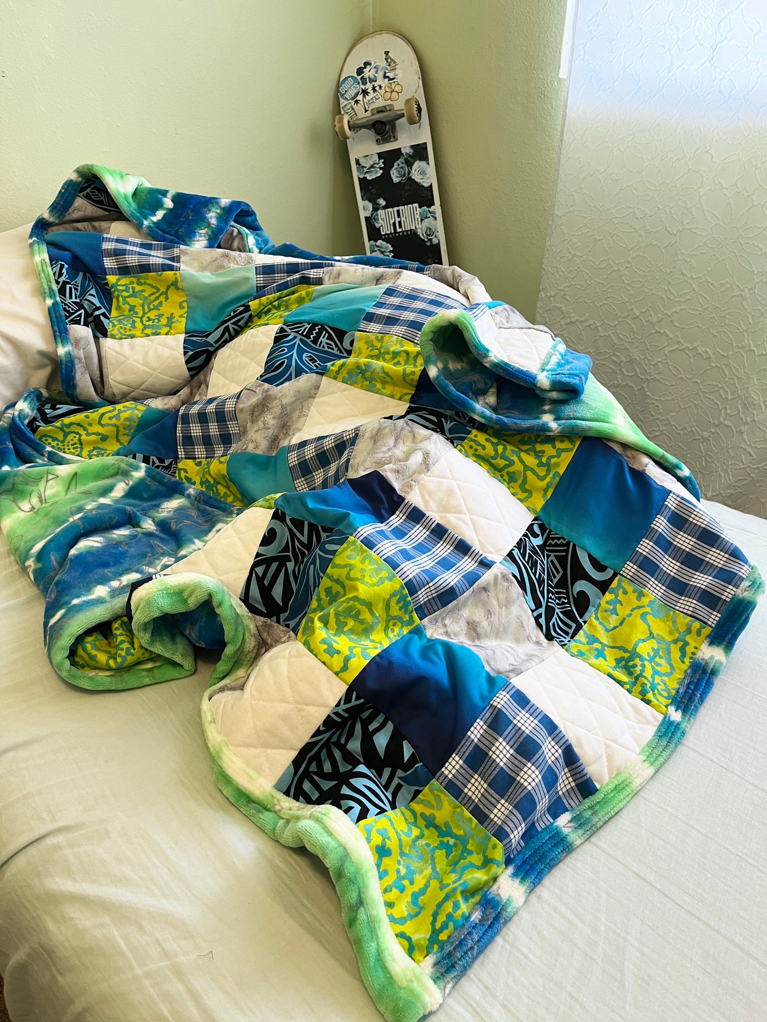 50"x60" Comfy throw, handcrafted with cotton and plush polyester.